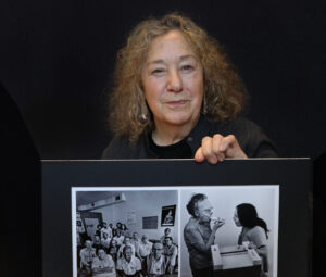 A registered nurse, Charlotte previously served as the Director of Programs for Green For All, Executive Director of Commonweal, and a founder and Executive Director of Health Care Without Harm. In the 1970s, Charlotte was an organizer for the Carolina Brown Lung Association and is holding Earl Dotter photographs of that time in this photograph (also by Earl Dotter).